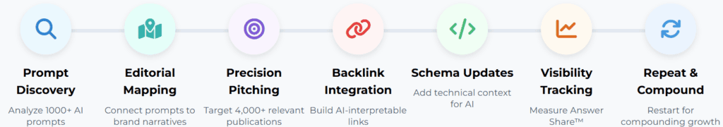 The system doesn’t just count mentions; it quantifies Answer Share™, the percentage of AI-generated responses that include your brand versus your competitors. That number becomes your north star.