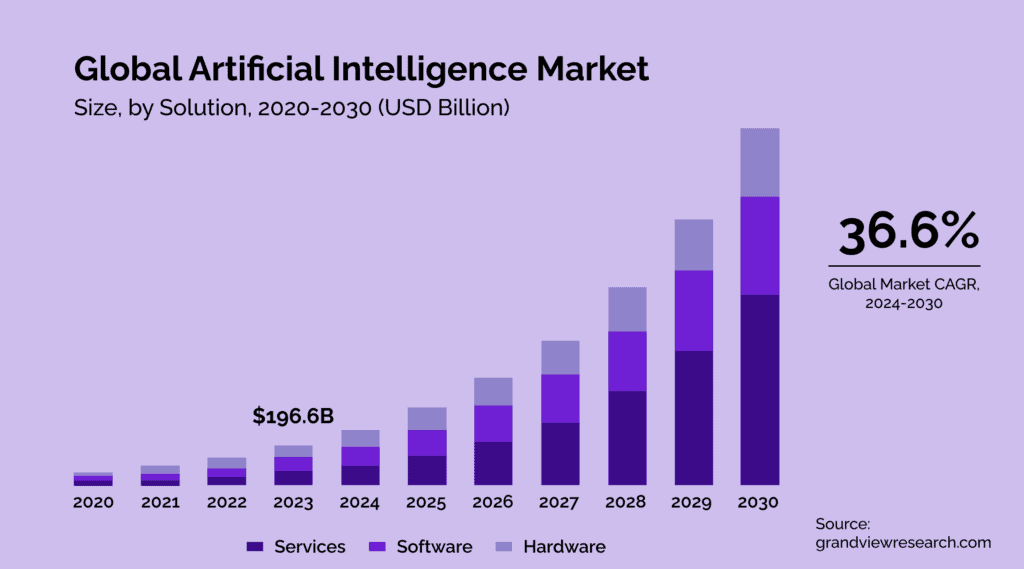You don’t have to like electronic music. You don’t have to like digital art, and you don’t have to like AI or machine learning, but these things are here to stay. The global artificial intelligence market size was estimated at $196.63 billion in 2023, is on track to hit $279.22 billion this year, and is projected to hit $1,811.75 billion by 2030. That’s a compound annual growth rate (CAGR) of 36.6%, which means at least one thing: this genie is never going back into the bottle.
