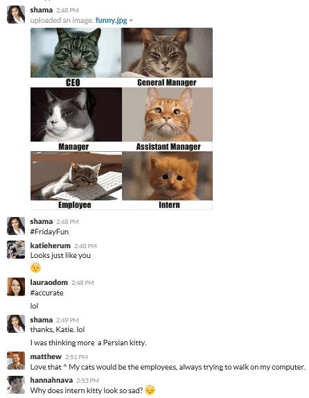And then, of course, there’s the banter that goes on via Slack throughout the day – sharing goofy videos, helpful tools or blog posts, or just joking around. Work hard, play hard, right?